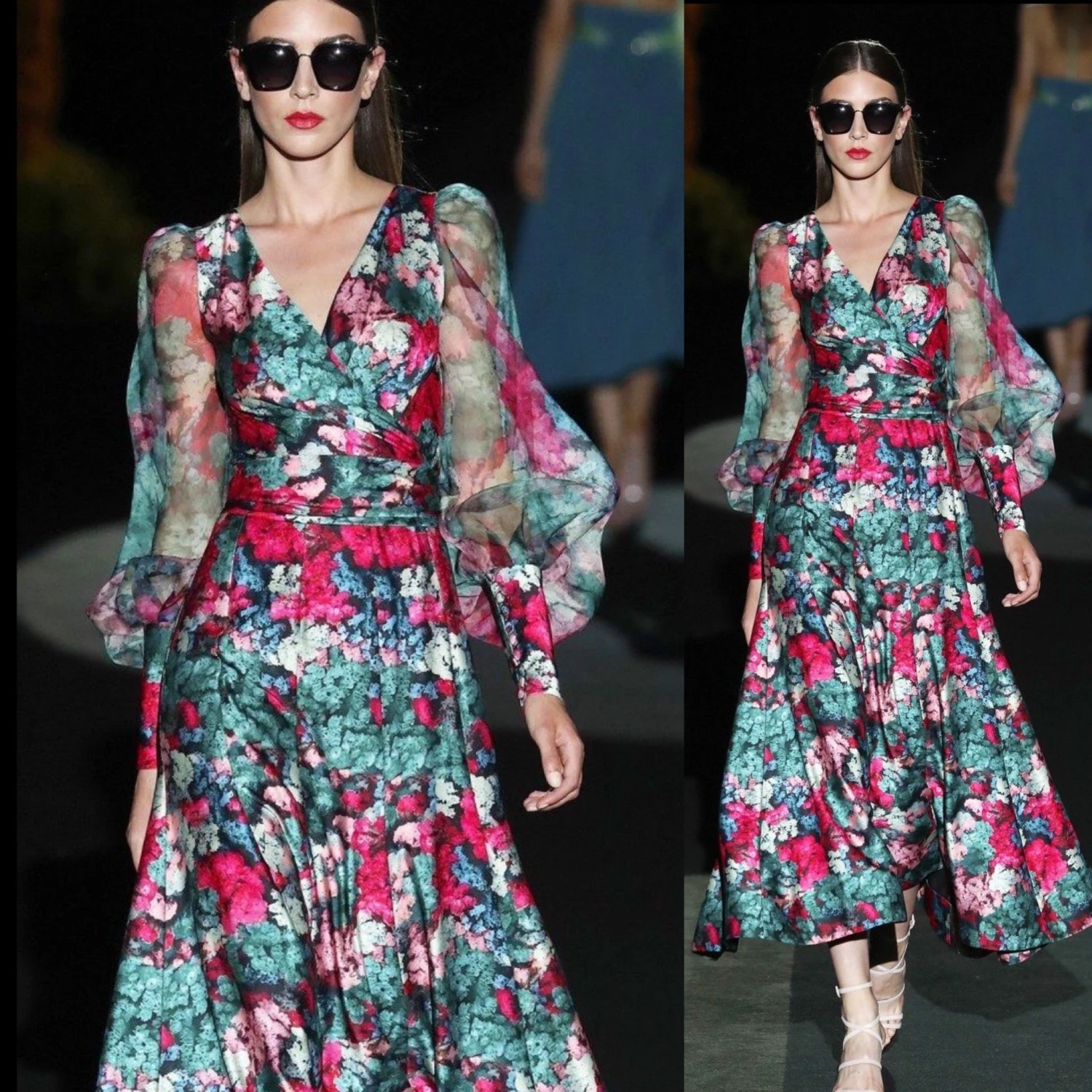 Ormai manca poco alla primavera, e noi? Noi siamo pronti a regalarvi il capo giusto per essere sempre in linea con i tempi. Vestito lungo a fantasia con manica lunga a sbuffo velata è un capo unico nel suo genere, Indossato si posa morbidamente sul corpo della donna che lo utilizza, regalandole charme ed eleganza due caratteristiche che vengono valorizzate da questa fantasia a fiori colorati, che rendono la donna che lo indossa pronta ad affrontare le giornate fresche di primavera. Può essere indossato per serate più impegnative, come: feste, eventi, party cocktail, branch e cerimonie. Il tessuto è al 95% Polyester e al 5% elastan. Si consiglia lavaggio in acqua fredda