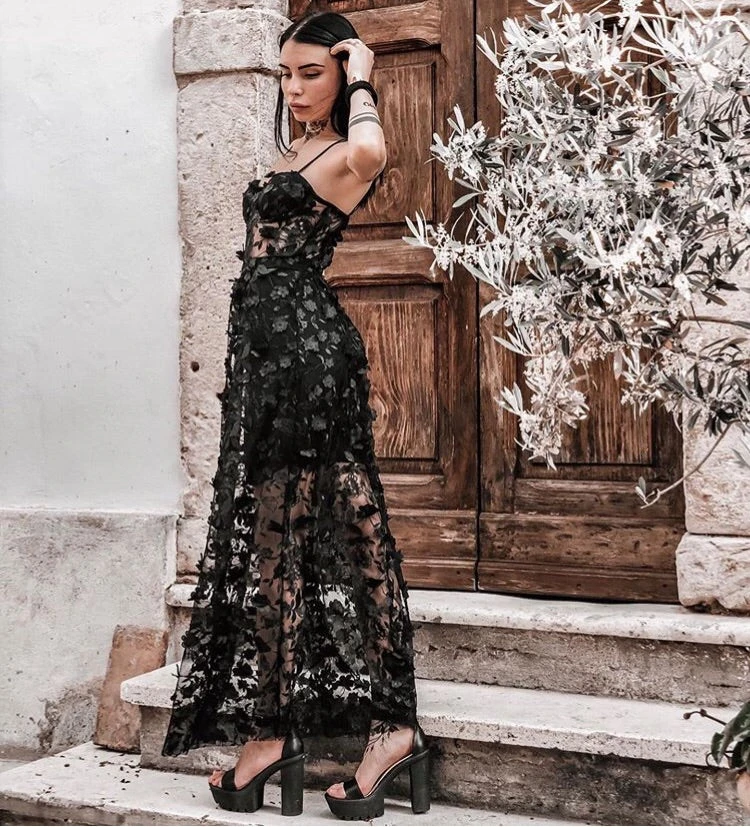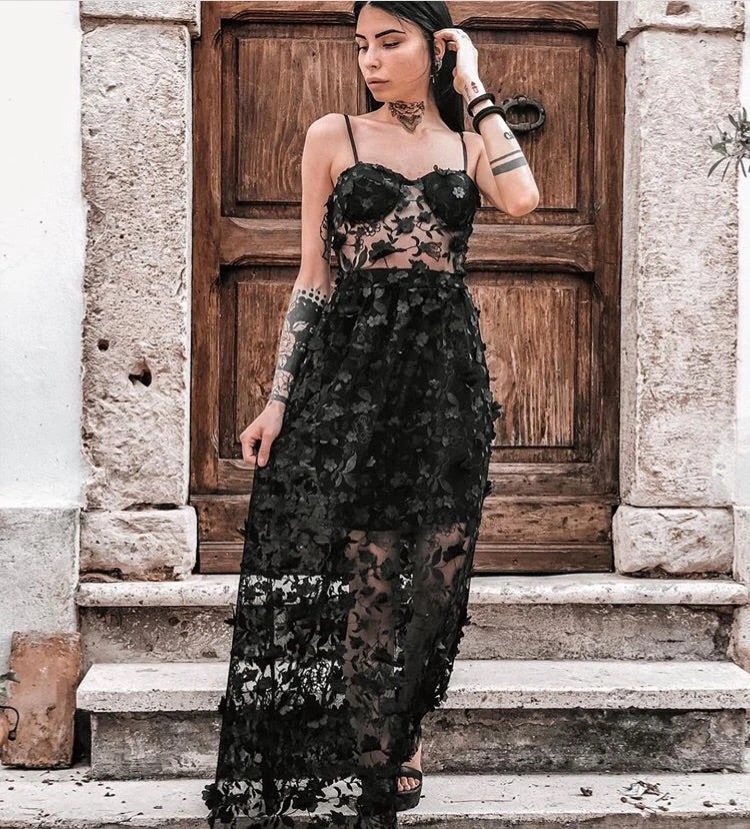 Abito lungo di tulle e corpetto con scollo a cuore velato è un capo davvero particolare nel suo genere. Indossato si posa morbidamente sulle curve della donna che l’utilizza, regalandole sensualità, charme e tanta eleganza. La sua particolarità è quell’effetto vedo non vedo che stuzzica sempre lo sguardo dell’uomo che le passa accanto. Può essere adatto per feste, party, cocktail party e cerimonie. Il tessuto è al 100% Polyester. Si consiglia lavaggio in acqua fredda