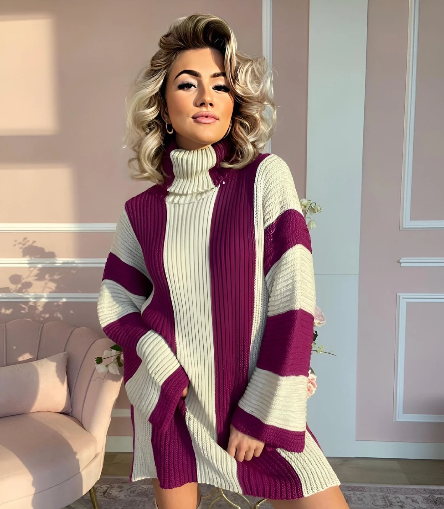 Recensisci per primo “Linda Vestito Donna Maxi Pull Collo Alto Manica Campana Bicolore Morbido Casual Elegante Caldo” Annulla risposta