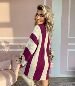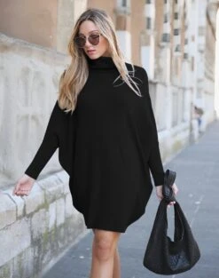 Linda Vestito Donna Maxi Pull Collo Alto Manica Campana Bicolore Morbido Casual Elegante Caldo