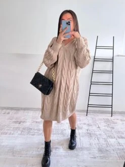 Vestito Donna Morbido Gonna Campana Manica Sbuffo Scollo V Fantasia Fiori Bottoni Casual Elegante