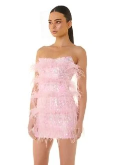 Vestito Donna Scollo Cuore Bretelle Paillettes Piume Bicolore Strass Elegante Sensuale