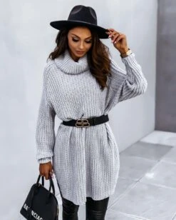 Linda Vestito Donna Maxi Pull Collo Alto Manica Campana Bicolore Morbido Casual Elegante Caldo