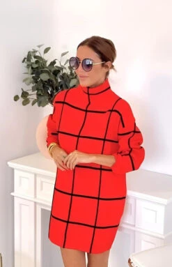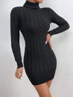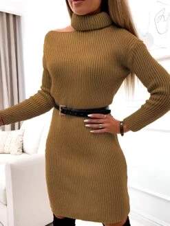 Vestito Donna Maxi Pull Collo Alto Morbido Caldo Manica Sbuffo Trama Intreccio Casual Elegante
