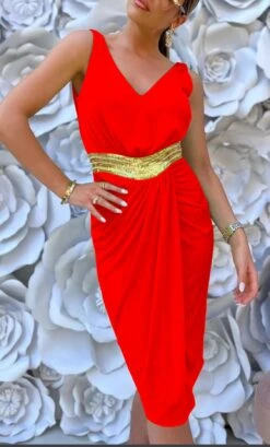 Vestito Donna Bretelle Scollo Cuore Paillettes Perle Gioiello Spacchi Elegante Sensuale