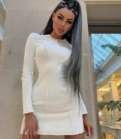 Vestito Donna Tubino Cut Out Fiocchi Manica Lunga Sensuale Elegante