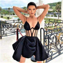Vestito Donna Scollo Cuore Bretelle Asimmetrico Drappeggiato Volant Elegante Sensuale
