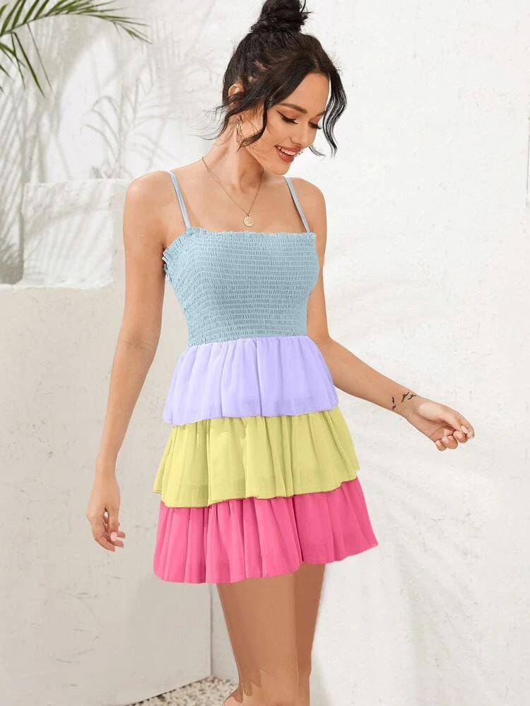 Questo vestito, è un capo unico nel suo genere. indossato si posa morbidamente sul corpo della donna che l’utilizza, regalandole charme e spensieratezza, due caratteristiche che ogni donna ricerca in un capo. Le sue particolarità sono: le bretelle regolabili, le balze di colori diversi e la parte superiore del capo a fascia elastica. Possono essere accostati accessori come: pochette e decolté oppure sandali. Può essere adatto per giornate easy o per serate meno impegnative. Il tessuto 1 è al 100% poliestere, mentre il tessuto 2 è al 95% viscosa e al 5% elastico. Si consiglia lavaggio a mano e in acqua fredda.
