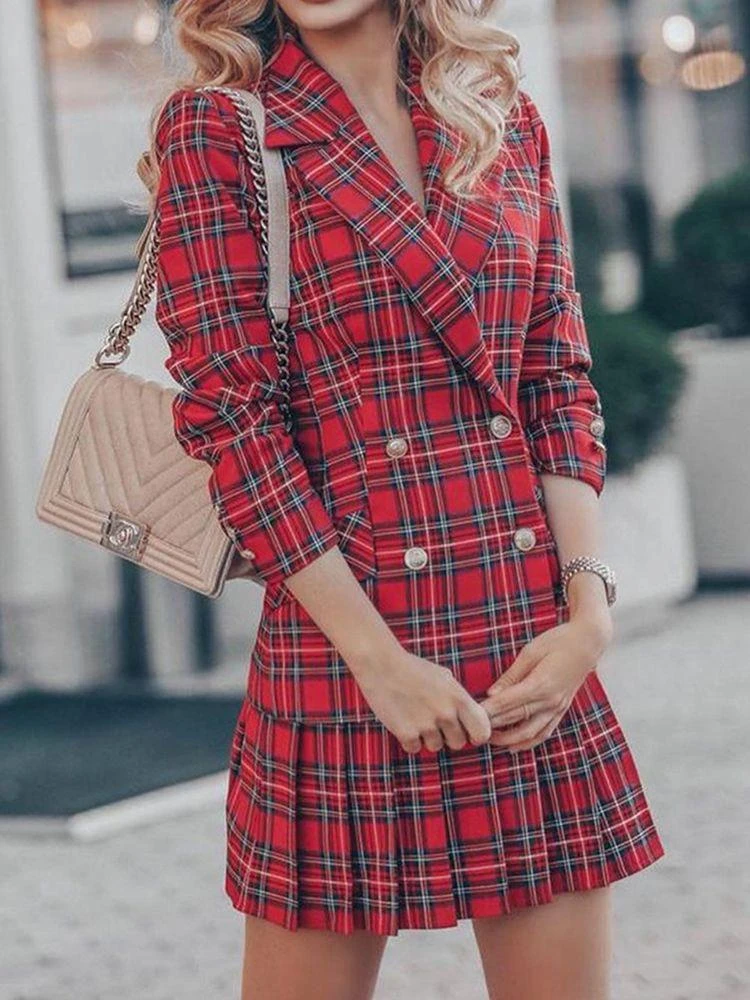 Recensisci per primo “Vestito Donna Blazer Doppio Petto Gonna Svasata Fantasia Scozzese Bottoni Oro” Annulla risposta