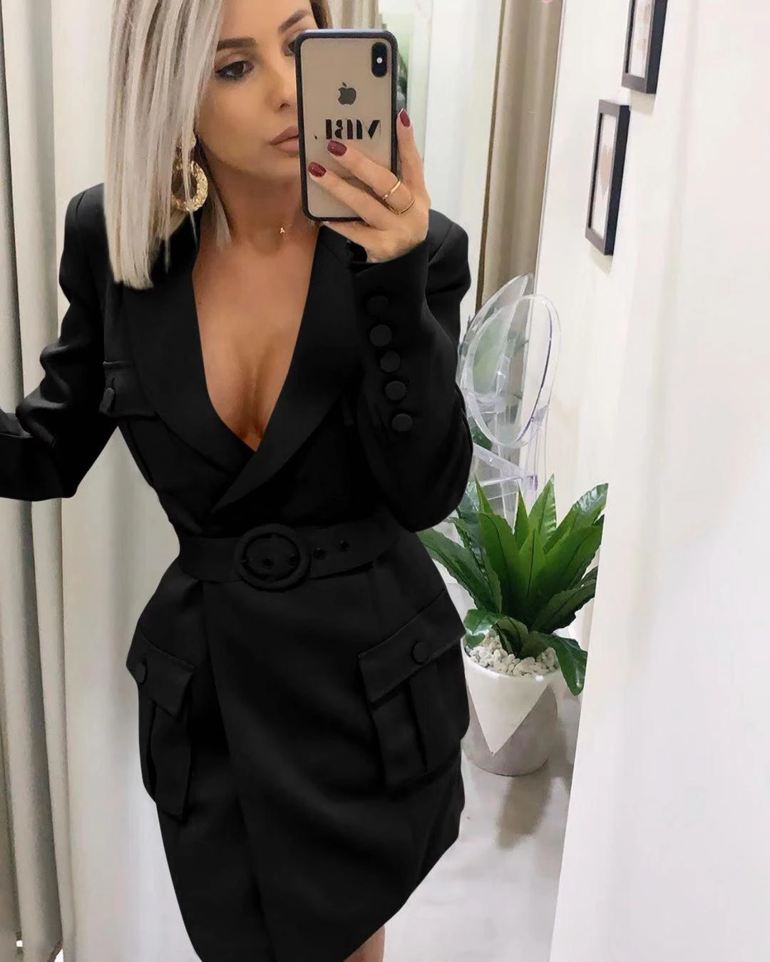 Vestito blazer doppio petto, è un abito molto particolare in quanto potrebbe essere scambiato come un soprabito. Unico nel suo genere, ha molte particolarità: lo scollo a V, i bottoni sul polso, i tasconi e la cintura che rende giustizia al girovita di chi lo indossa. Questo capo può essere utilizzato per affrontare una semplice giornata lavorativa o per serate più impegnative, come feste, party o cene. Il tessuto è al 87% Polyester e 13%elastan. Si consiglia lavaggio in acqua fredda