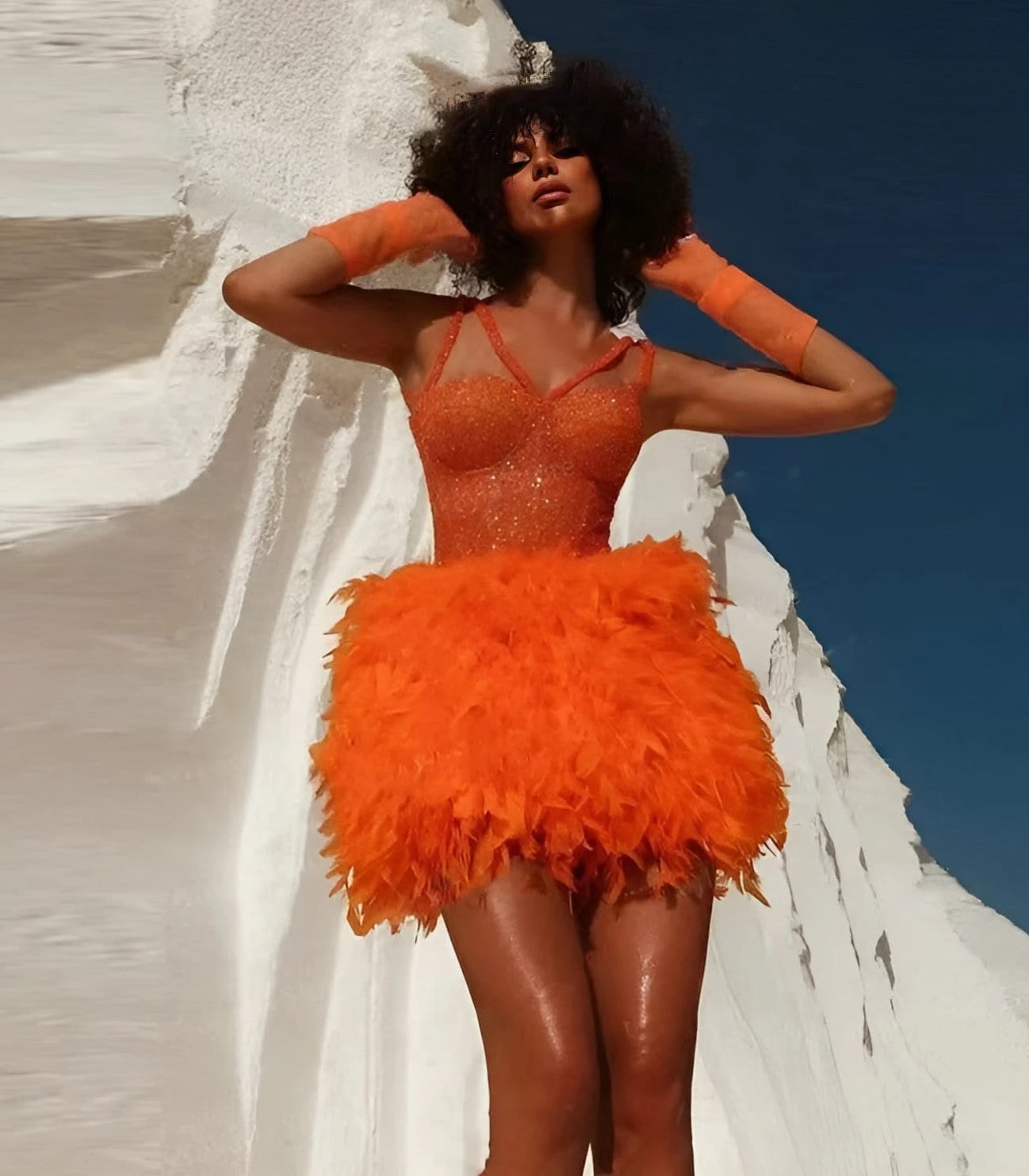 Recensisci per primo “Vestito Donna Bretelle Scollo Cuore Paillettes Piume Monocolore Elegante Cerimonia” Annulla risposta