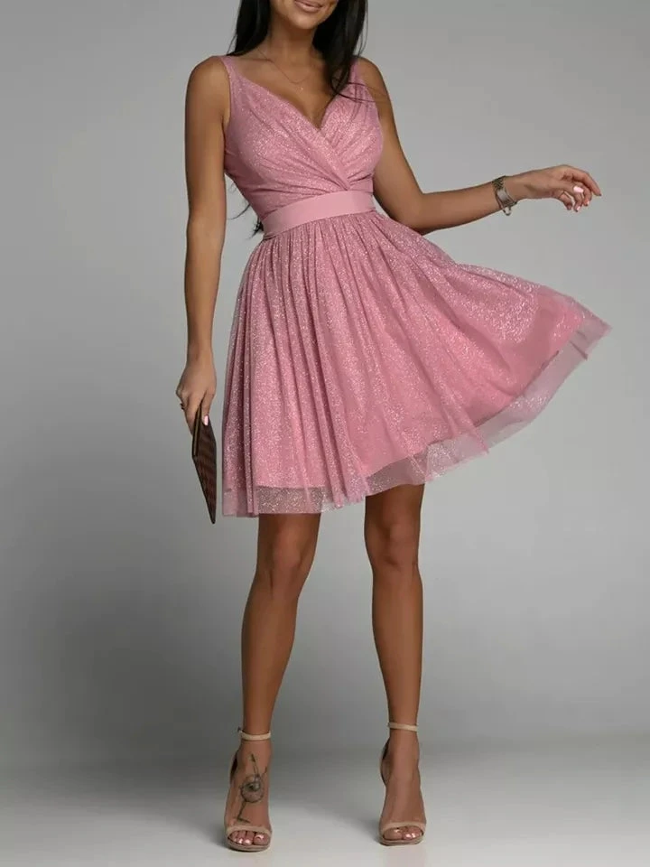 Recensisci per primo “Vestito Donna Bretelle Scollo V Fascia Gonna Svasata Tulle Brillantini Elegante” Annulla risposta