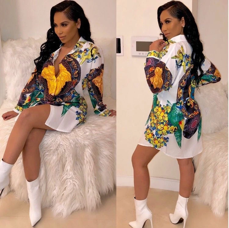 Vestito a camicia, a manica lunga, è un capo molto particolare nel suo genere. La fantasia, regala all’abito classe ed eleganza. Si posa morbidamente sulle curve della donna che lo indossa,. Se adornato dagli accessori giusti, fa fuori-uscire tutto il sex-appeal che si nasconde in una donna. Può essere indossato per svolgere giornate più semplici, come: passeggiate o cene, oppure per eventi, come: feste, party, cocktail party e cerimonie. Il tessuto è al 95% Polyester e al 5% elastan. Si consiglia lavaggio in acqua fredda