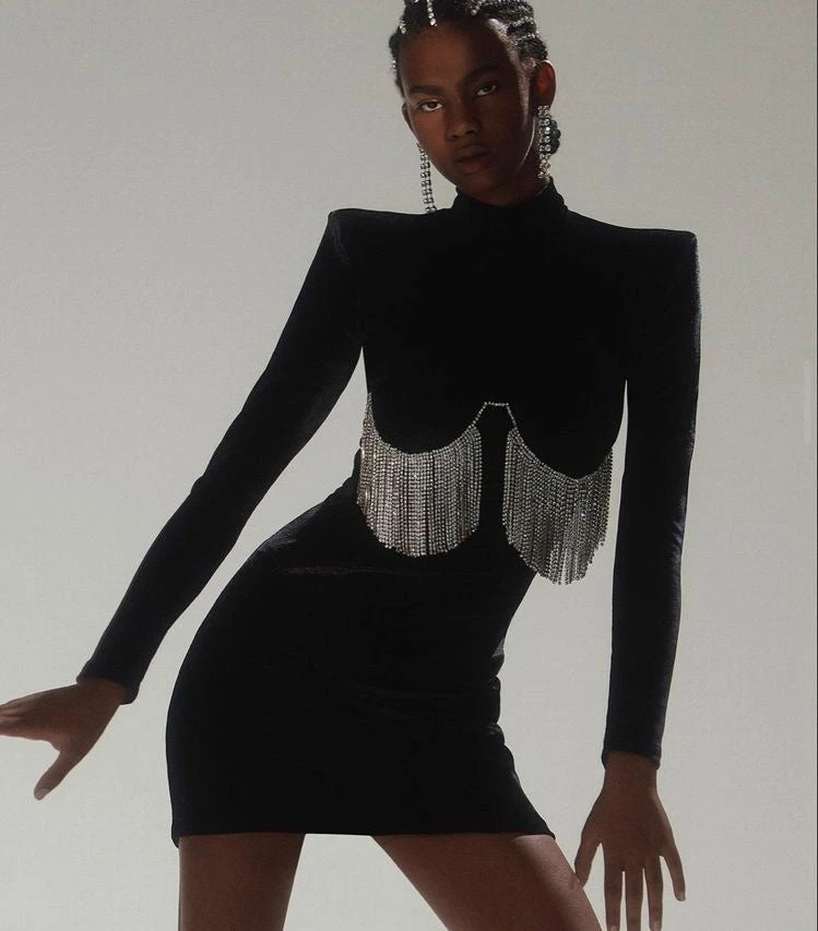 Questo vestito, è un capo davvero semplice nel suo genere, indossato si posa perfettamente sul corpo della donna che l’utilizza, regalandole charme ed eleganza, due caratteristiche che rendono una donna sicura di sé in qualsiasi contesto essa si trovi. Le sue particolarità sono: la vestibilità aderente dal tessuto che modella e valorizza le forme della donna che lo indossa e le catenine a frange in argento che modellano il seno. Può essere adatto per feste, party, cocktail party, branch e cerimonie. Il tessuto è al 95% polyester 5% spandex. Si consiglia lavaggio a mano con acqua fredda.