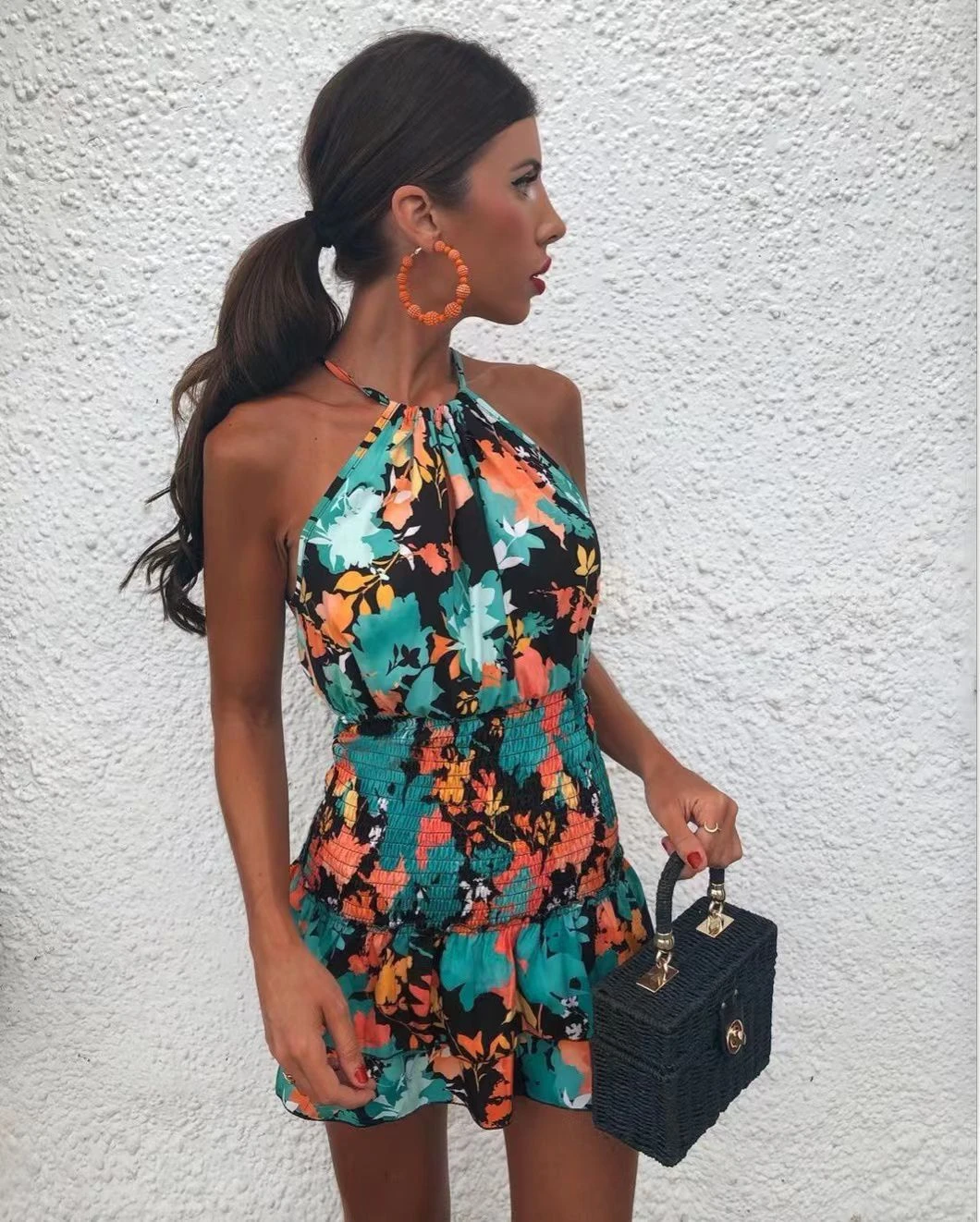 Questo vestito, è un capo molto semplice ma particolare nelle sue caratteristiche. Indossato si posa leggiadramente sulle curve della donna che l’utilizza, regalandole comodità e spensieratezza, caratteristiche che ogni donna ricerca per fronteggiare queste giornate calde d’estate. Le sue peculiarità sono: la coulisse al collo, il giro-manica, la fantasia a fiori, l’elastico che avvolge perfettamente i fianchi e le rush poste nella parte inferiore del capo. Possono essere affiancati accessori come: decolleté, sandali, borse di varie dimensioni e pochette. Può essere adatto per giornate più easy, o per serate più impegnative. Il tessuto è al 95% poliestere e al 58% elastico. Si consiglia lavaggio a mano e in acqua fredda.