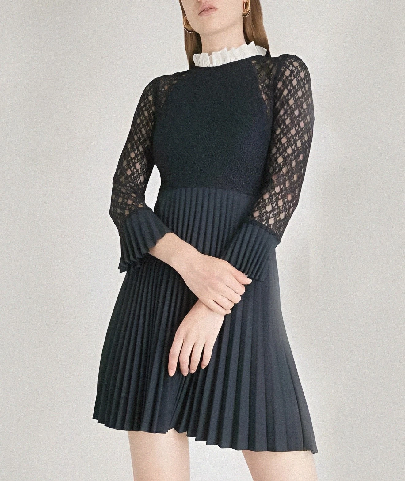 Recensisci per primo “Vestito Donna Gonna Campana Plissé Manica Lunga Merletto Colletto Rush Bicolore Elegante Sensuale” Annulla risposta