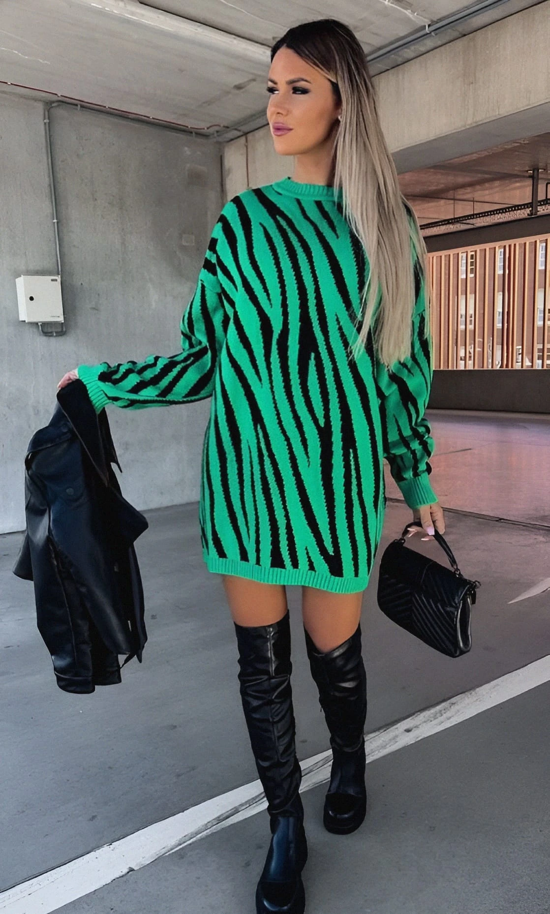 Questo vestito è un capo morbido e caldo, un capo semplice ma unico nel suo genere. Indossato si posa morbidamente sul corpo della donna che l’utilizza, regalandole comodità e charme, due caratteristiche che rendono una donna sicura di sé in qualsiasi contesto essa si trovi. Le sue particolarità sono, la fantasia bicolore e la morbidezza. Può essere adatto per queste giornate fredde d’inverno o per serate da trascorrere in piacevole compagnia. Il tessuto è al 95% poliestere e al 5% elastico. Si consiglia lavaggio in acqua fredda e a mano.