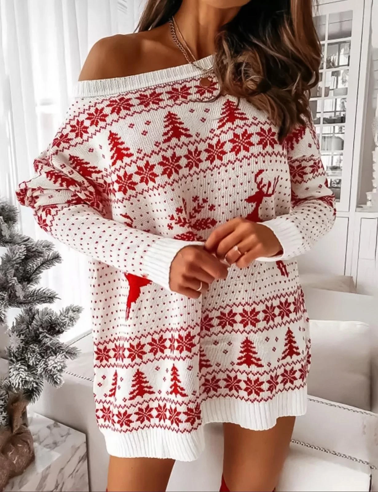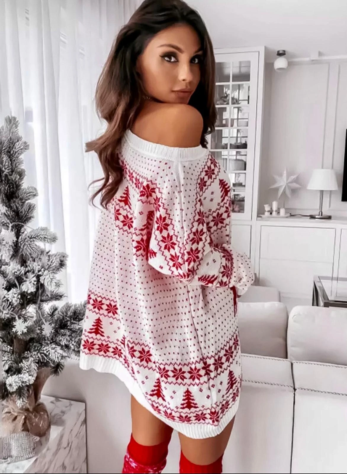 Questo maxi-pull, è un capo davvero unico nel suo genere. Indossato si posa morbidamente sul corpo della donna che l’utilizza, regalandole sensualità e leggerezza, due caratteristiche che ogni donna ricerca in un capo. Le sue particolarità, sono: la fantasia natalizia e la morbidezza. Può essere adatto sia per giornate fredde d’inverno ma anche per serate un pò più impegnative, come ad esempio una cena tra amici. Il tessuto è al 80% poliestere e al 20% poliamide. Si consiglia lavaggio a mano.