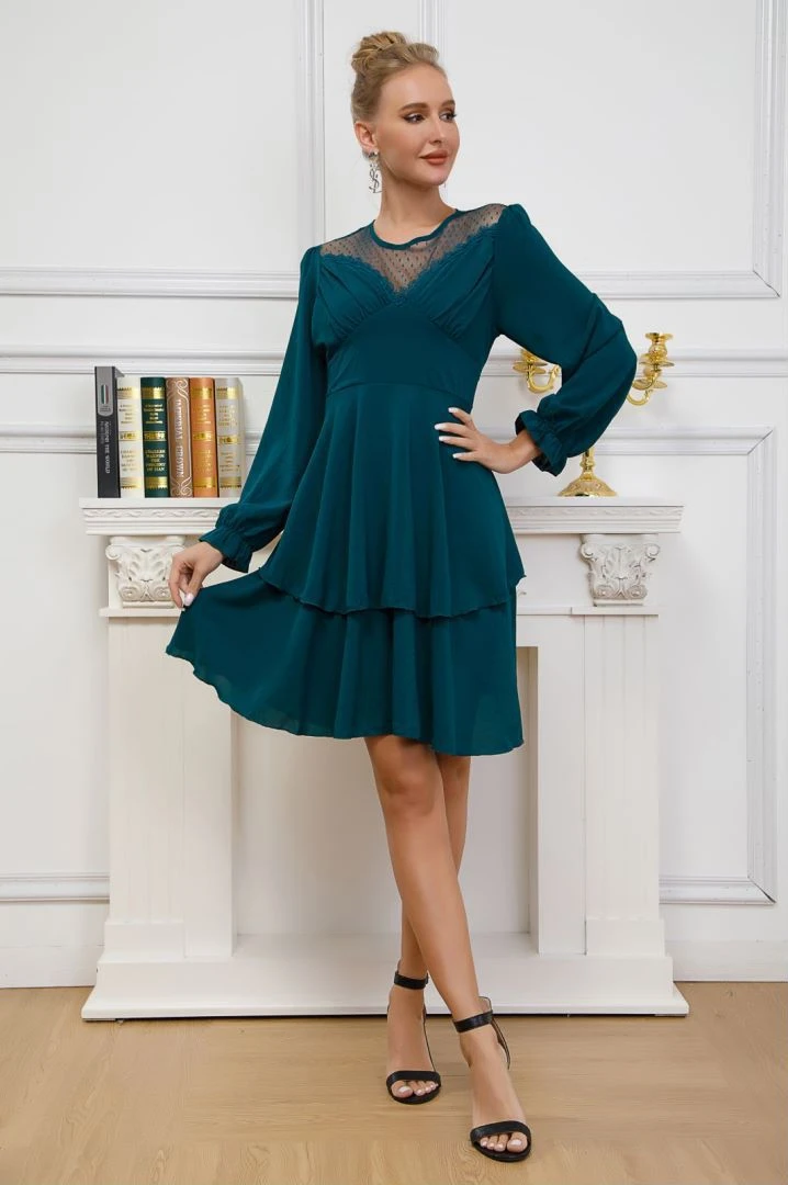 Questo vestito, è un capo davvero unico nel suo genere. Indossato si posa morbidamente sul corpo della donna che l’utilizza, regalandole charme ed eleganza, due caratteristiche che ogni donna ricerca in un capo per sentirsi davvero al top. Le sue particolarità sono: la manica a sbuffo, la gonna a campana con balze e lo scollo in tulle. Può essere adatto per feste, party, cocktail party, brunch, cerimonie e giornate casual. Possono essere accostati accessori come: pochette, borse di varie dimensioni, sandali e decolleté. Il tessuto è al 95% poliestere e al 5% elastico. Si consiglia lavaggio in acqua fredda.