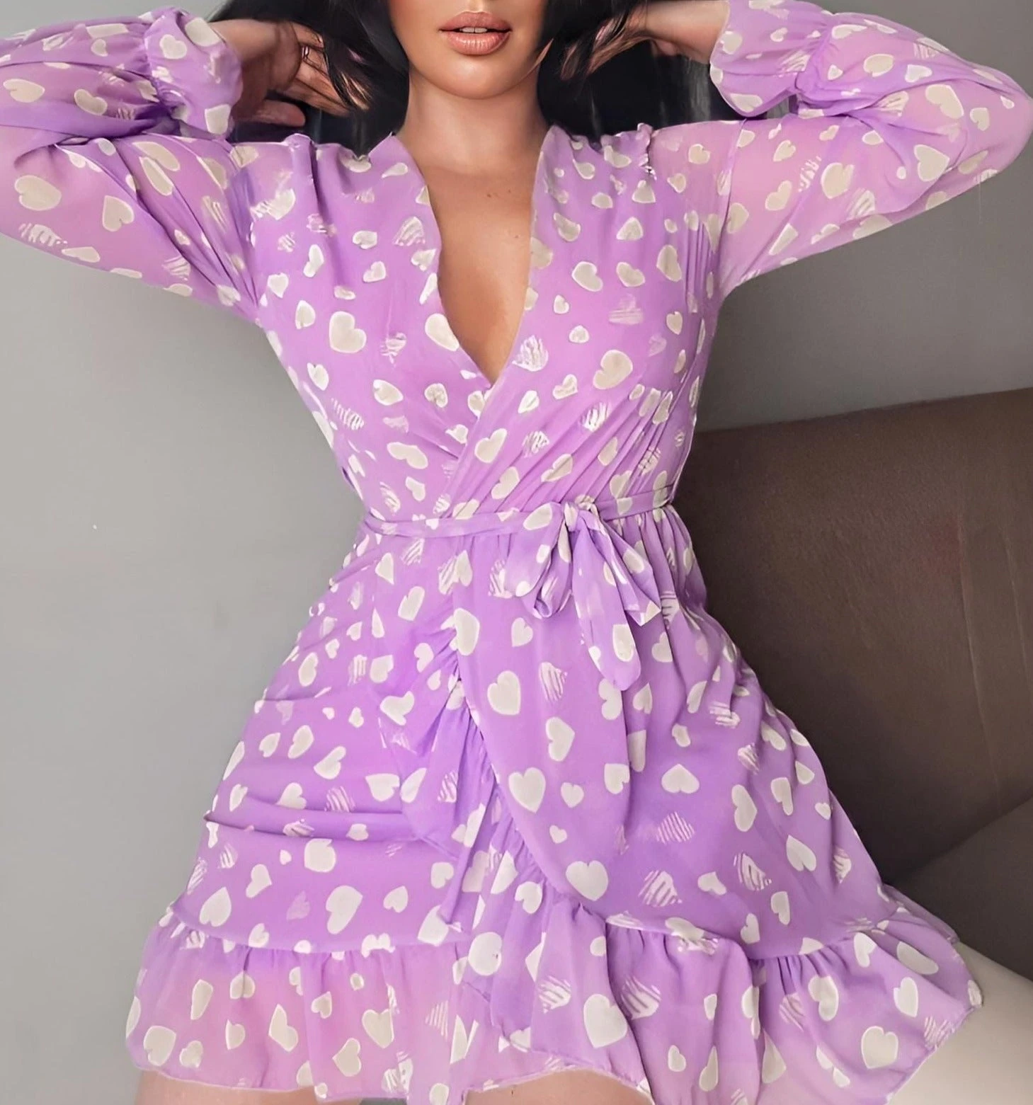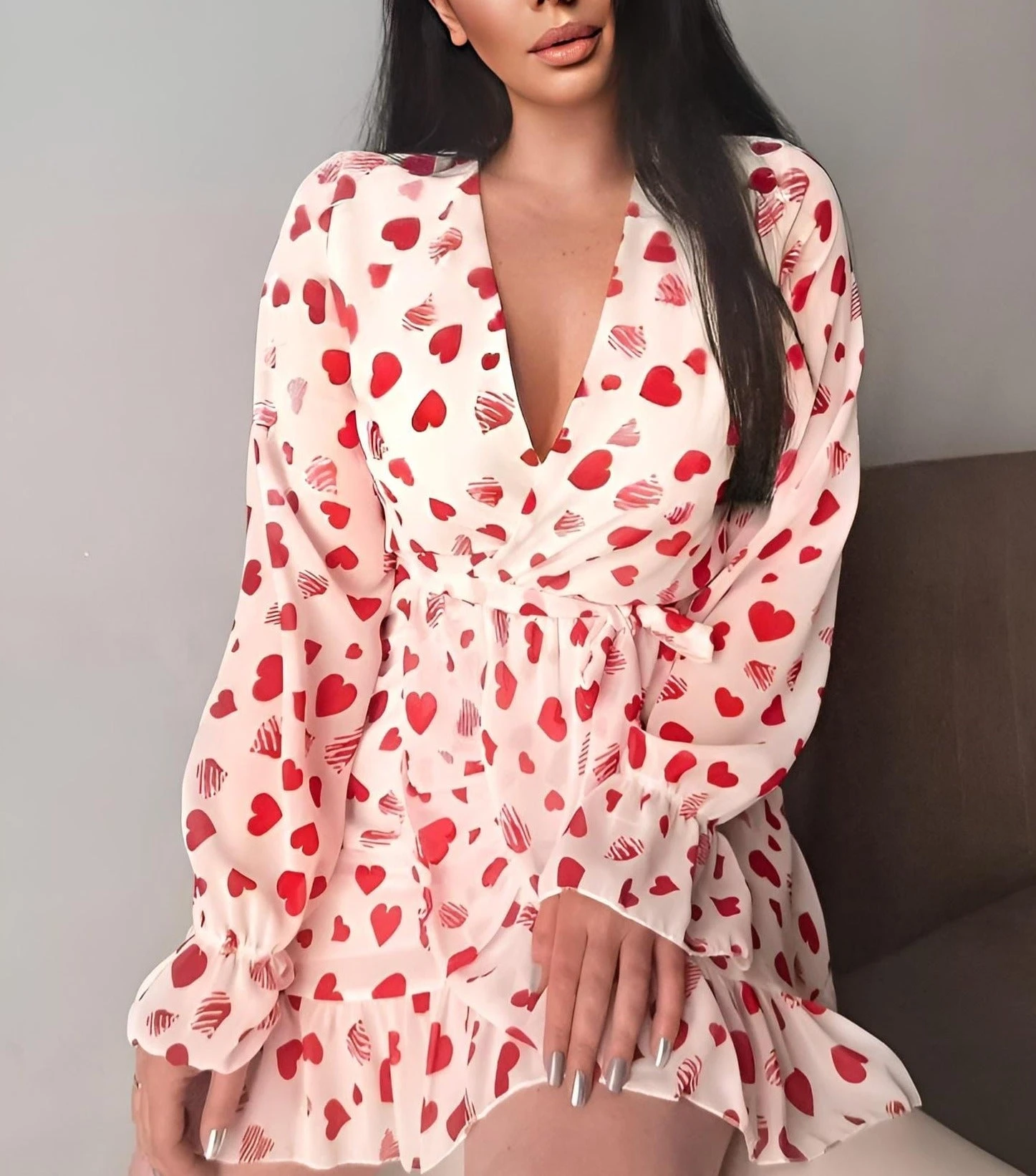 Un capo cosi, ti salverà dalle giornate indecise. Indossato si posa avvolgendo perfettamente le curve della donna che l’utilizza, regalandole sensualità e sex-appeal, grazie allo scollo a V, la gonna a campana e la fantasia a cuori. Possono essere accostati accessori come: decolleté, sandali, borse di varie dimensioni e pochette. E’ adatto per: feste, party, cocktail party, brunch e giornate più casual. Il tessuto è al 95% poliestere e al 5% elastico. Si consiglia lavaggio a mano e in acqua fredda.