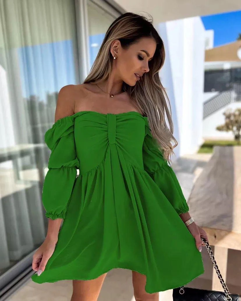 COD: BGVZD 7609842434261 Categorie: VESTITI, Vestiti Morbidi Tag: Drappeggiato, Manica a sbuffo, Scollo bardot, Tessuto