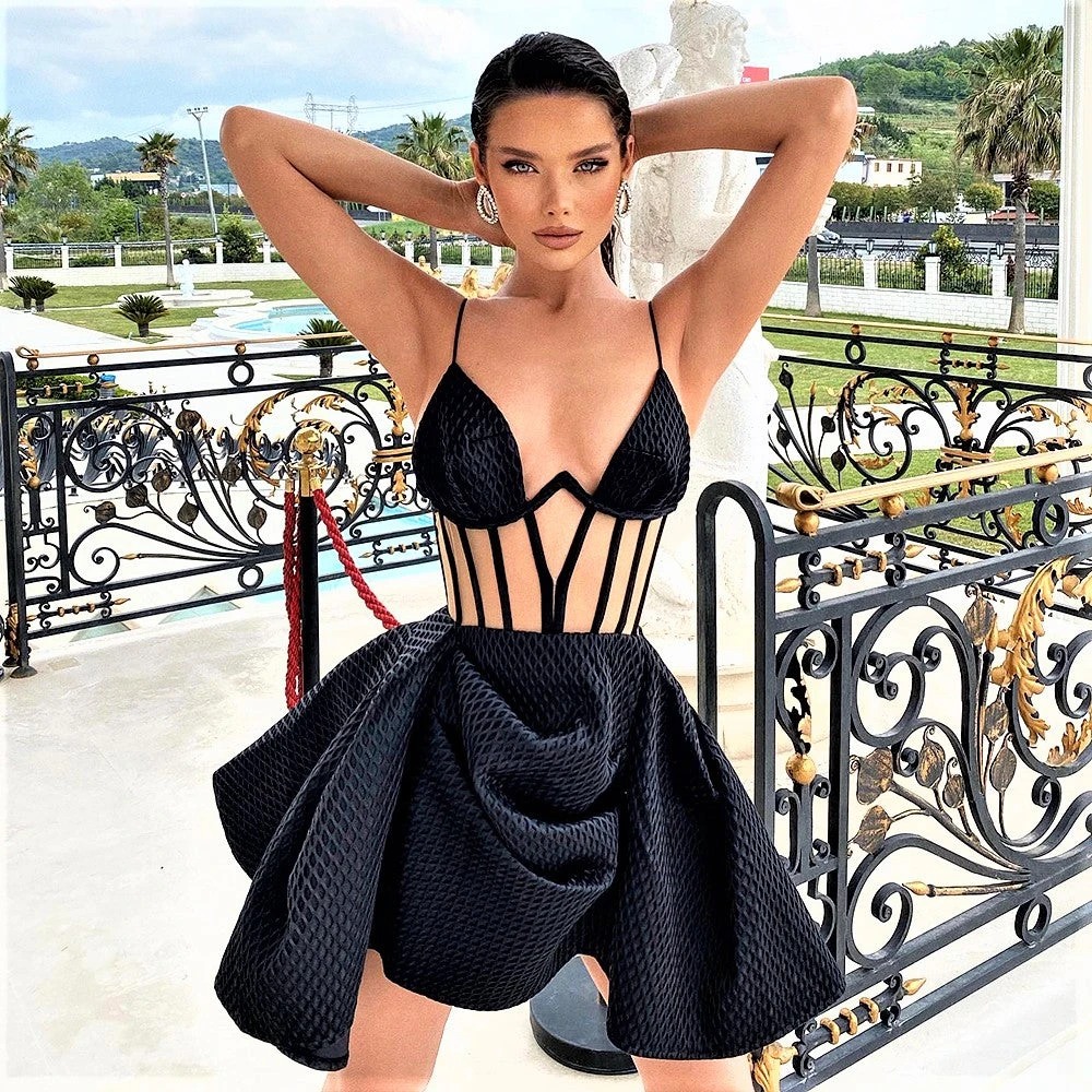 Recensisci per primo “Vestito Donna Scollo Cuore Bretelle Ferretto Bustier Velato Gonna Campana Arricciata Elegante Sensuale” Annulla risposta