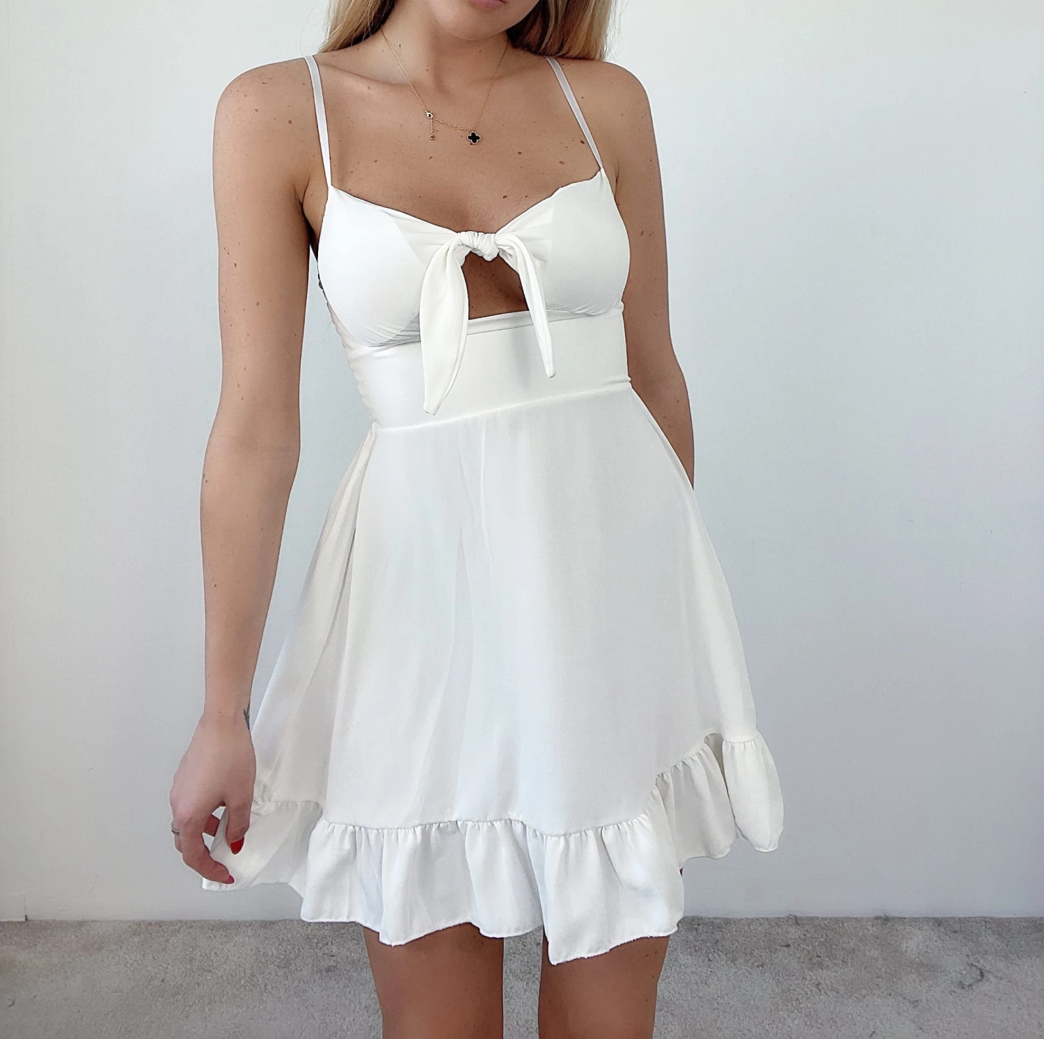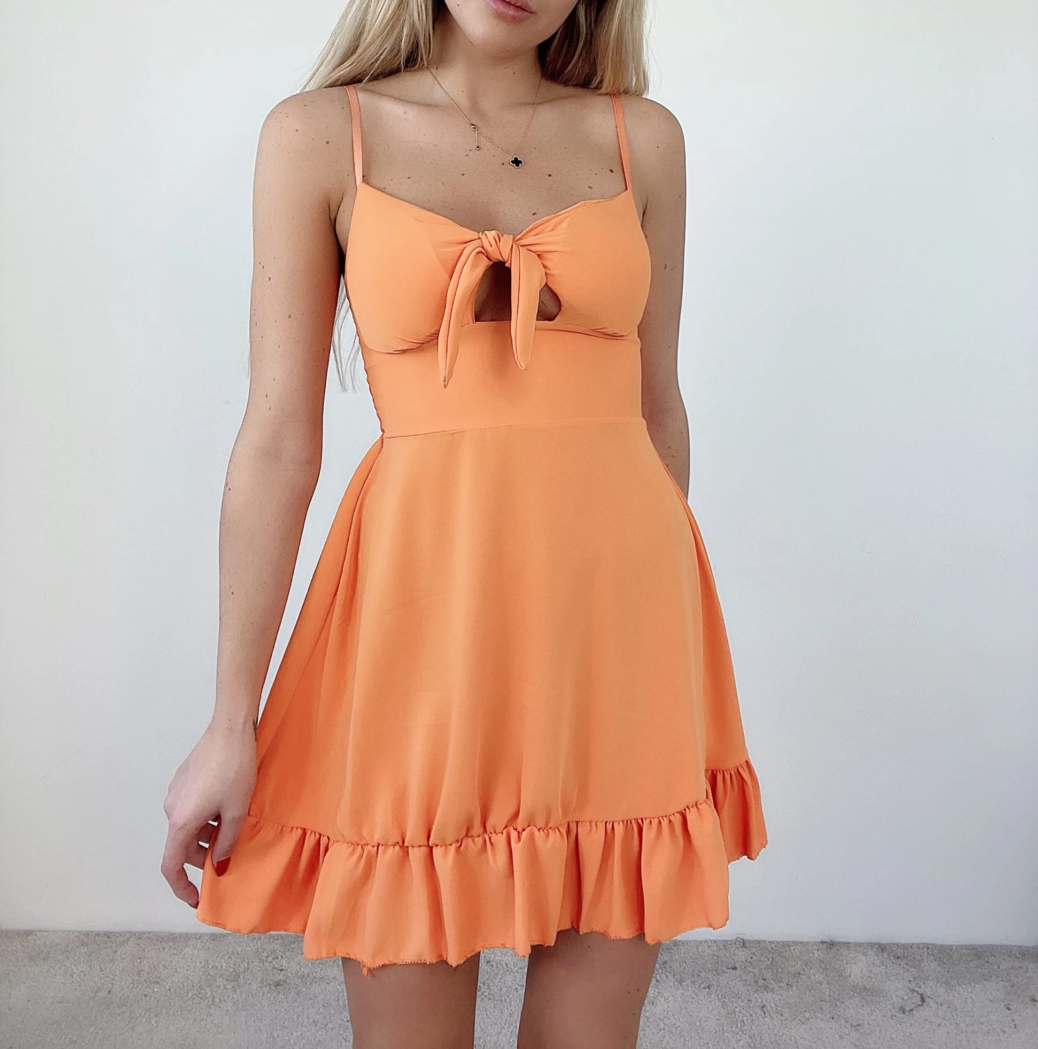Questo vestito, è un capo molto cool e alla moda da indossare in queste giornate calde d’estate. Indossato si posa morbidamente sulle curve della donna che l’utilizza, regalandole leggerezza e personalità, caratteristiche che inducono una donna a sentirsi sempre adeguata in tutte le situazioni. Le sue caratteristiche principali sono: lo scollo a cuore, il fiocco e la gonna con rush svasata, tutti questi elementi rendono questo capo unico. Possono essere accostati accessori come: sandali, decolleté, pochette e borse di varie dimensioni. Può essere adatto per feste, party, cocktail party, brunch e giornate casual. Il tessuto è al 95% poliestere e al 5% elastico. Si consiglia lavaggio a mano e in acqua fredda.