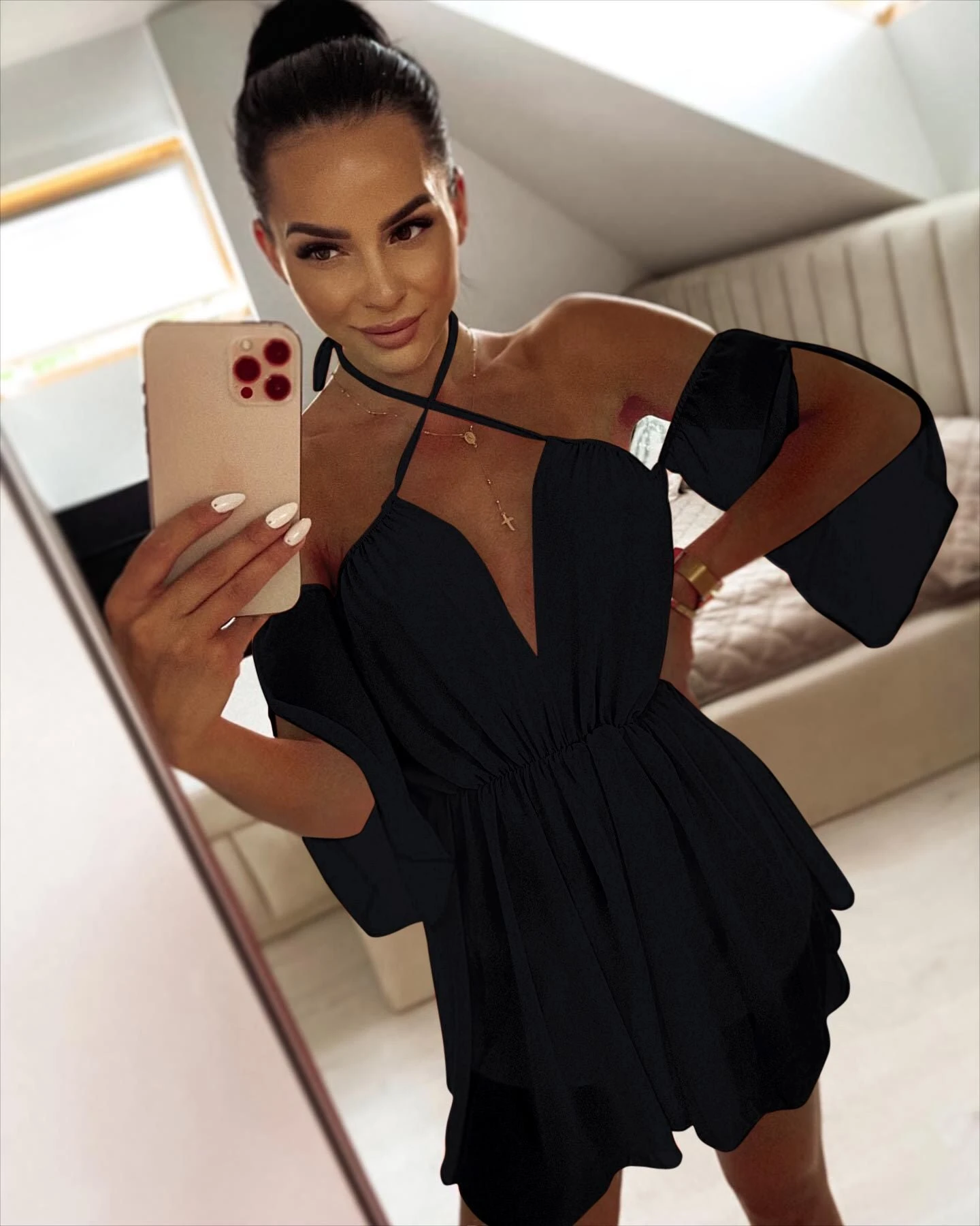Questo vestito, è un capo davvero unico nel suo genere. indossato si posa morbidamente sulle curve della donna che l’utilizza, regalandole charme ed eleganza, due caratteristiche che rendono una donna sicura di sé in qualsiasi contesto essa si trovi. Le sue particolarità sono: lo scollo a V, l’intreccio dietro al collo delle bretelle, la gonna a campana e la manica ampia. Possono essere accostati accessori come: decoltè e pochette. Può essere adatto per feste, party, cocktail party, branch e cerimonie. Il tessuto è al 95% poliestere e al 5% elastico. Si consiglia lavaggio a mano e in acqua fredda.