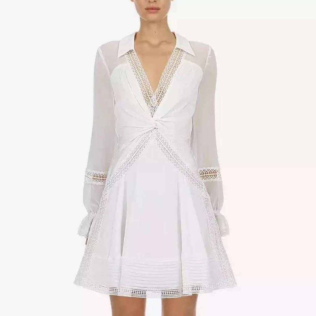 Questo vestito rende la donna che l’indossa spensierata e sobria, caratteristiche che donano eleganza e charme. Le sue particolarità sono: il tessuto morbido e leggero in pizzo sangallo, lo scollo a V, il tessuto traforato e la manica velata con rush. Tutto ciò rende questo capo davvero unico. Può essere accompagnato da vari accessori come: decolleté, pochette ma anche sandali, ecc… Adatto per uscite in costiera o per eventi come: pool party, feste, passeggiate pomeridiane ecc. Il tessuto e al 95% poliestere e 5% elastico. Si consiglia lavaggio a mano e in acqua fredda