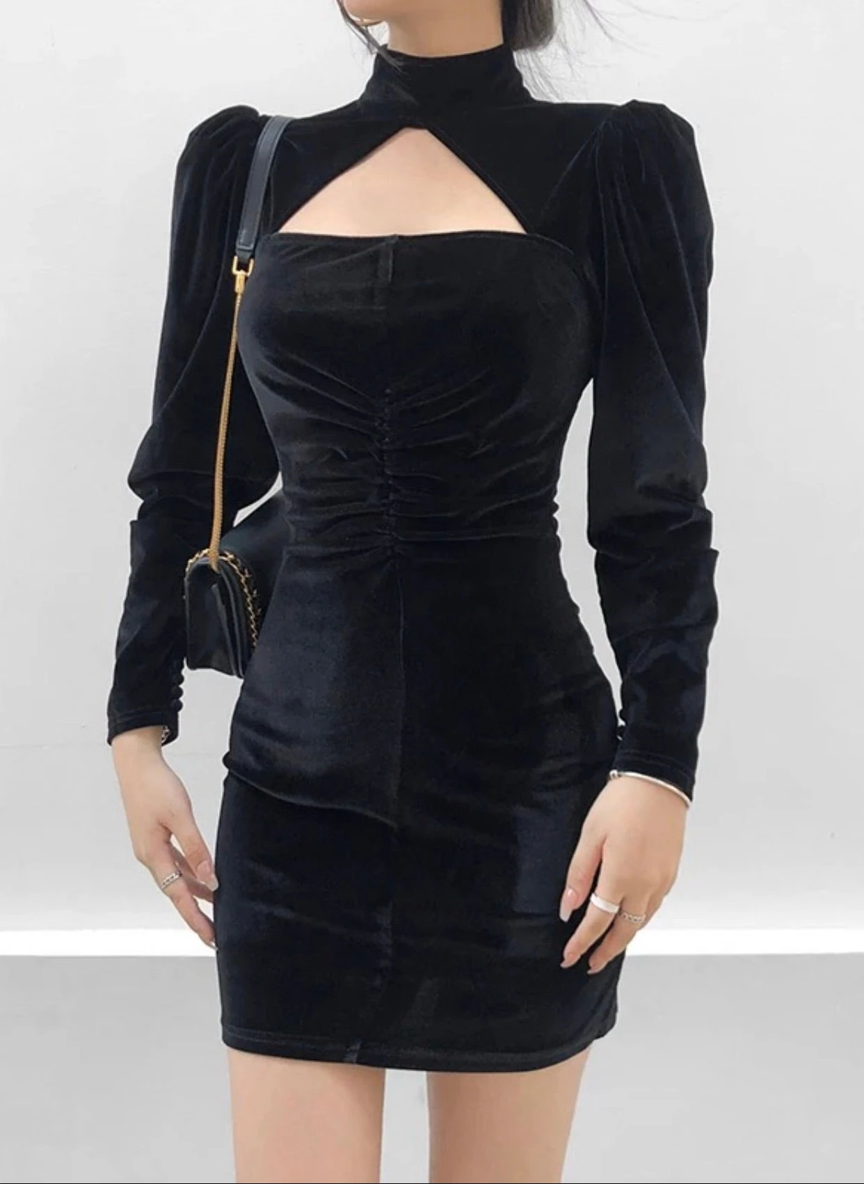 Vestito Donna Tubino Costina Spalla Scoperta Bretella Manica Lunga Aderente Sensuale Elegante Casual