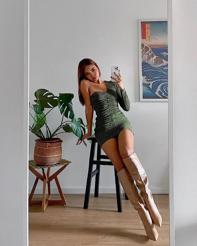Questo vestito, è un capo unico nel suo genere. Indossato si posa perfettamente sulle curve della donna che l’utilizza, regalandole charme ed eleganza, due caratteristiche che rendono una donna sicura di sé in qualsiasi contesto essa si trovi. Le sue caratteristiche sono: il mono-spalla, l’arricciatura, la coulisse e lo scollo a cuore. Possono essere accostati accessori come pochette, decolté, stivali e borse di varie dimensioni. Può essere adatto per feste, party, cocktail party, branch e cerimonie. Il tessuto è al 95% poliestere e al 5% elastico. Si consiglia lavaggio a mano e in acqua fredda.