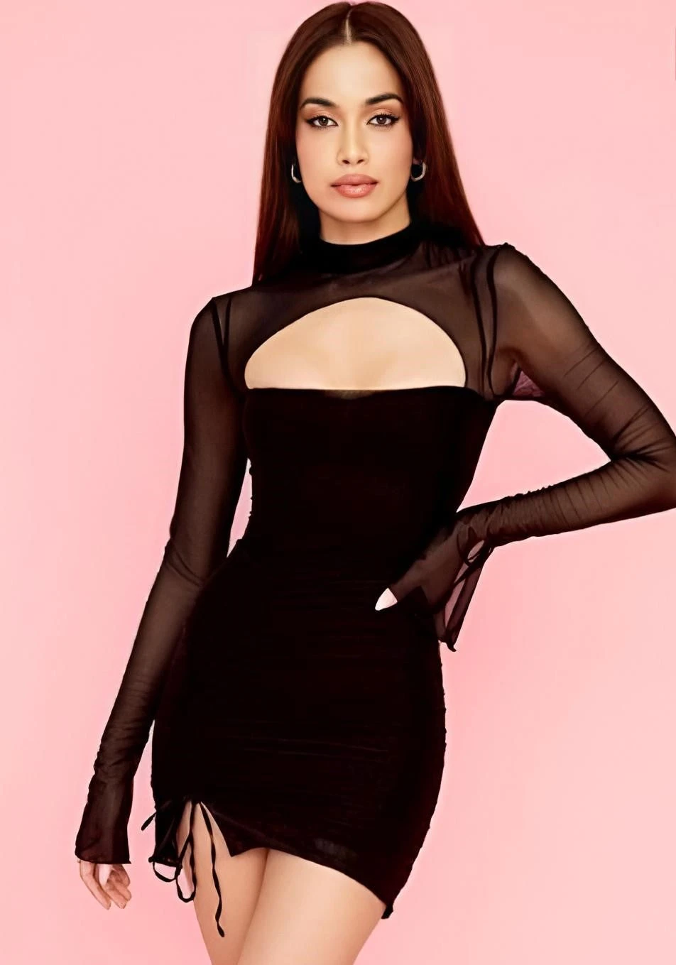 Vestito a tubino con coulisse, è un capo che rende giustizia alle curve della donna che l’indossa. Utilizzato si posa perfettamente sul corpo della donna, regalandole sensualità e un certo sex-appeal, due elementi che stuzzicano sempre lo sguardo dell’uomo che le passa accanto. Le sue peculiarità sono: il cut out, lo scollo a cuore, la coulisse e le maniche in tulle. Possono essere accostati accessori come: decolleté e pochette. Può essere adatto per: feste, party, cocktail party, brunch e cerimonie. Il tessuto è al 85% nylon, al 10% poliestere e al 5% elastico. Si consiglia lavaggio a mano e in acqua fredda.