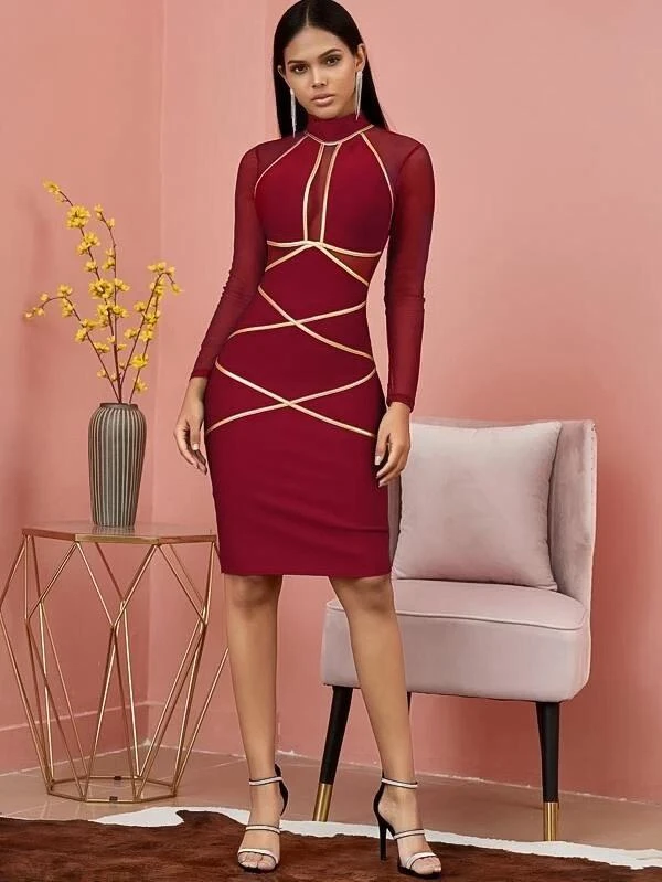 Questo vestito, è un capo davvero unico nel suo genere. Indossato si posa perfettamente sul corpo della donna che l’utilizza, evidenziandone perfettamente le sue curve. Regala alla donna che l’utilizza, sensualità ed eleganza, due caratteristiche che stuzzicano sempre lo sguardo dell’uomo che le passa accanto. Le sue particolarità, sono le maniche velate e l’intreccio di linee di colore oro. Può essere adatto per feste, party, cocktail party, branch, cerimonie. Il tessuto è al 65% cotone e al 35% spandex. Si consiglia lavaggio in acqua fredda.