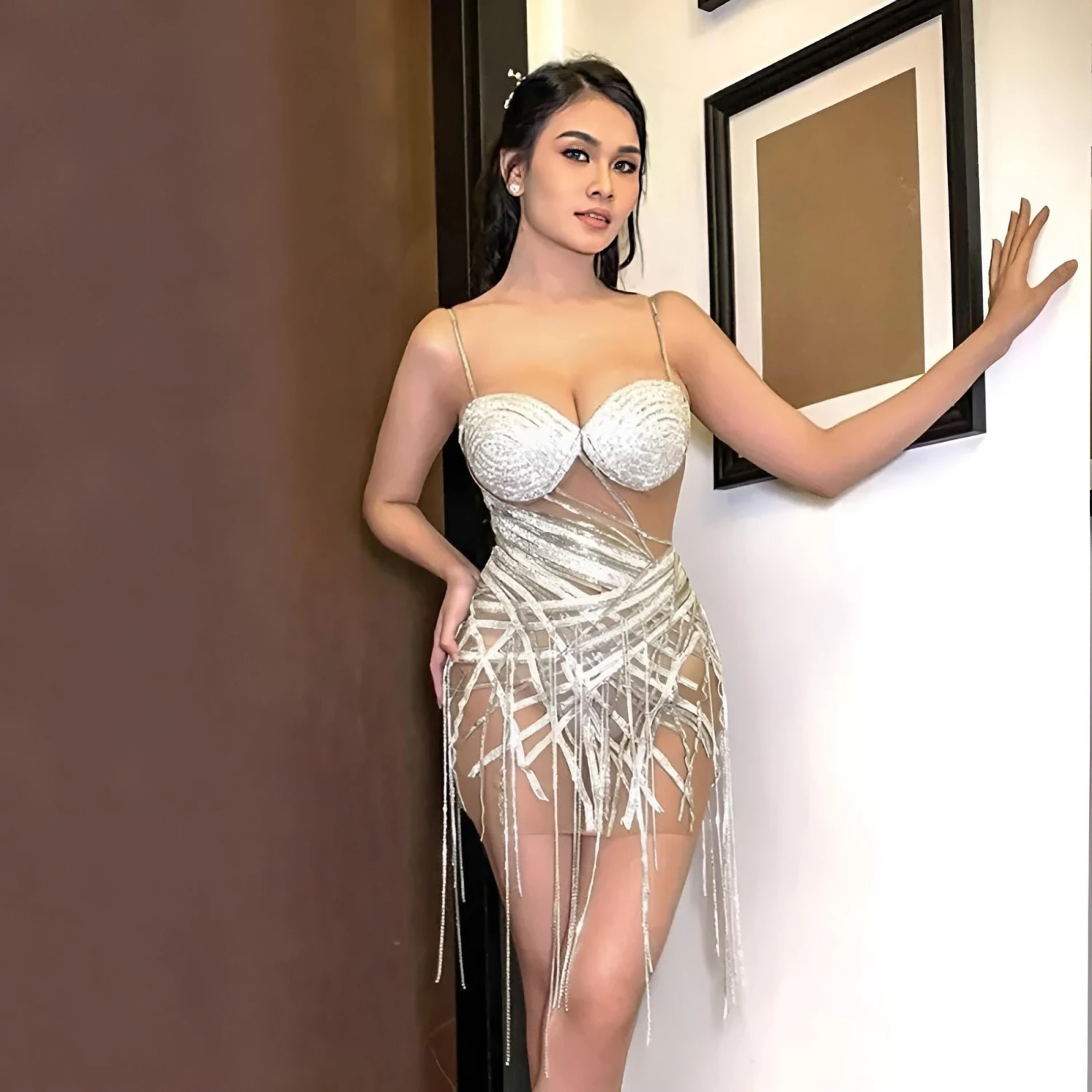 Per essere unica e particolare negli eventi più importanti ti consigliamo questo stupendo e magnifico vestito a tubino. indossato si posa perfettamente sulle curve della donna che l’utilizza, regalandole sensualità e charme, due caratteristiche che ogni donna ricerca per sentirsi unica e stupenda. Le sue peculiarità sono: le bretelle, lo scollo a cuore, le frange incrociate nella parte inferiore e la schiena scoperta. Possono essere accostati accessori come: decolleté, sandali e pochette. Il tessuto è al 95% poliestere e al 5% elastico. Si consiglia lavaggio a mano ed in acqua fredda.