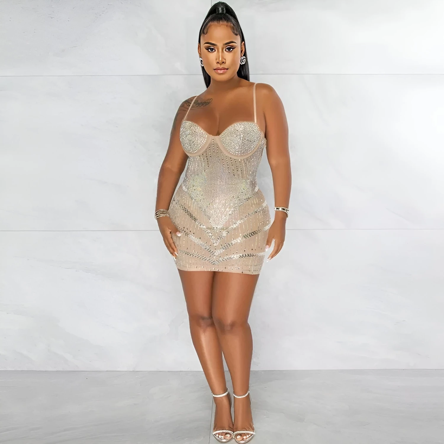 Questo vestito a tubino, è un capo che si adatta perfettamente sulle curve della donna che l’utilizza, donandole quell’effetto seducente che non guasta mai, grazie alle sue caratteristiche che ogni donna ricerca per sentirsi sempre al top e alla moda. Le sue peculiarità sono: lo scollo a cuore, le bretelle e gli strass posti su tutto il capo. Possono essere adornati accessori come: pochette, decolleté, sandali o borse di varie dimensioni. Può essere adatto per: party, cocktail party, brunch, serate di gala e cerimonie. Il tessuto è al 95% poliestere e al 5% elastico. Si consiglia lavaggio a mano e in acqua fredda