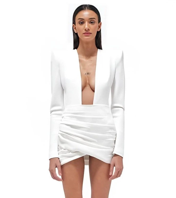 Questo vestito a tubino, è un capo che ti donerà una luce diversa negli eventi più importanti. Indossato si posa perfettamente sulle curve della donna che l’utilizza, regalandole sensualità e sex-appeal, caratteristiche che richiedono tanta personalità. Le sue peculiarità sono: le spalline, la manica lunga, lo scollo a V profondo e la gonna a portafoglio con drappeggio. Possono essere accostati accessori come: decolleté, sandali, pochette e borse di varie dimensioni. E’ adatto per serate più impegnative, esempio: cerimonie, feste, cocktail party ed ecc.. Il tessuto è al 95% poliestere e al 5% elastico. Si consiglia lavaggio a mano e in acqua fredda.