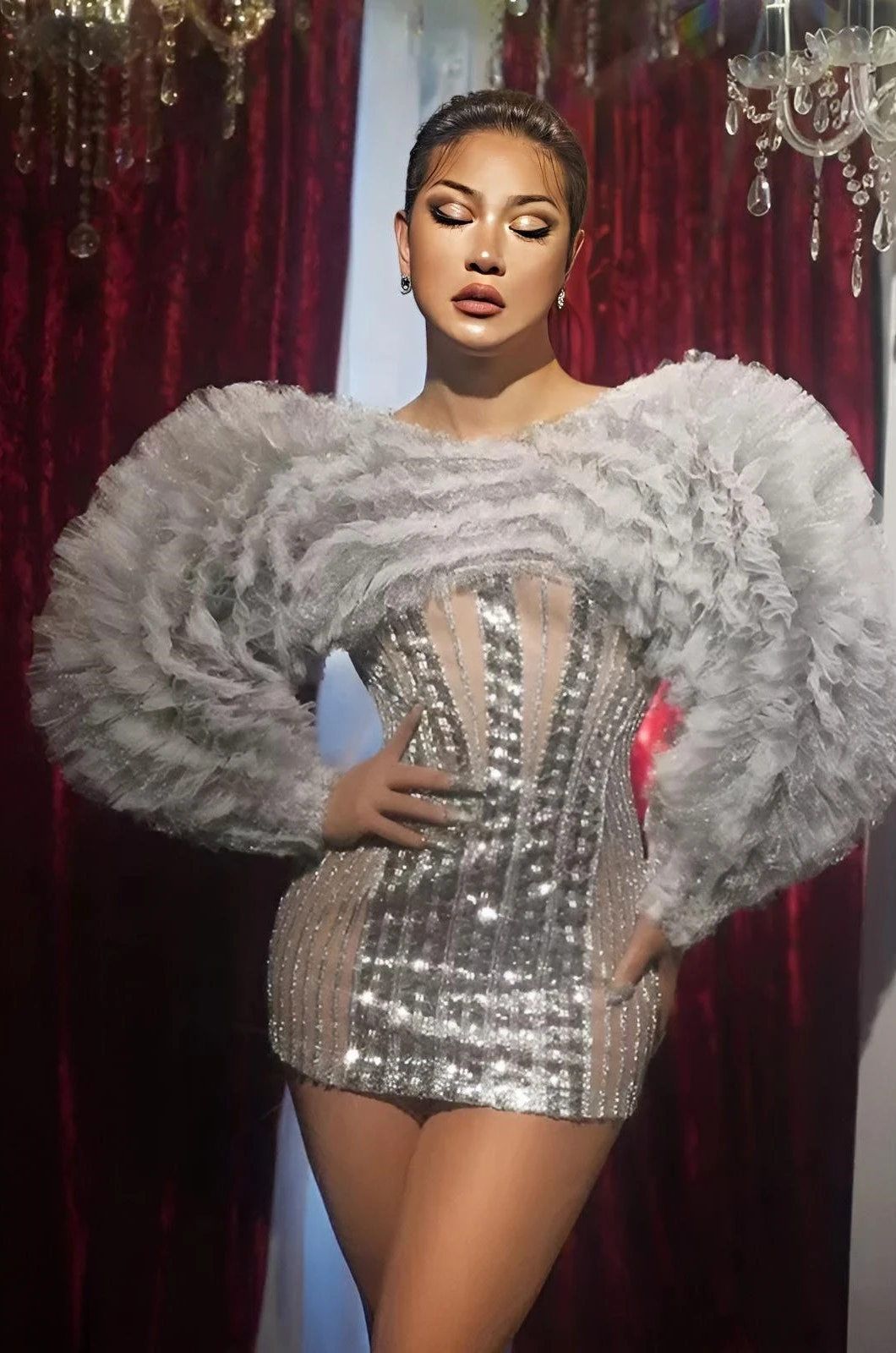 Recensisci per primo “Vestito Donna Tubino Strass Piume Manica Sbuffo Elegante” Annulla risposta