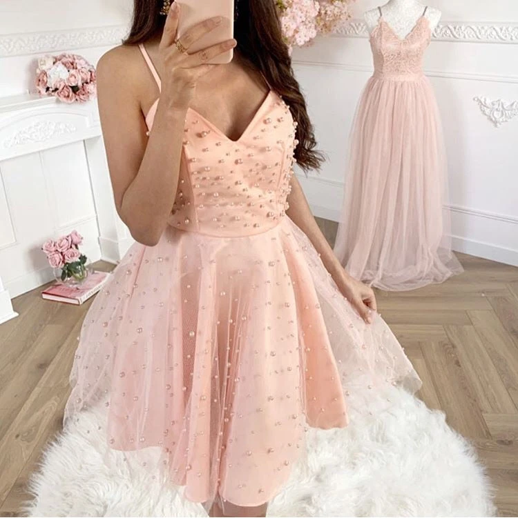 Questo vestito con scollo a cuore, è un capo molto elegante che può essere indossato in occasioni speciali. La sua particolarità, oltre il colore sono le perle applicate su tutto l abito, è il tulle che copre la parte inferiore del vestito, rendendolo sempre più morbido. Il tessuto è al 90% Polyester e 10% elastan. Si consiglia lavaggio in acqua fredda